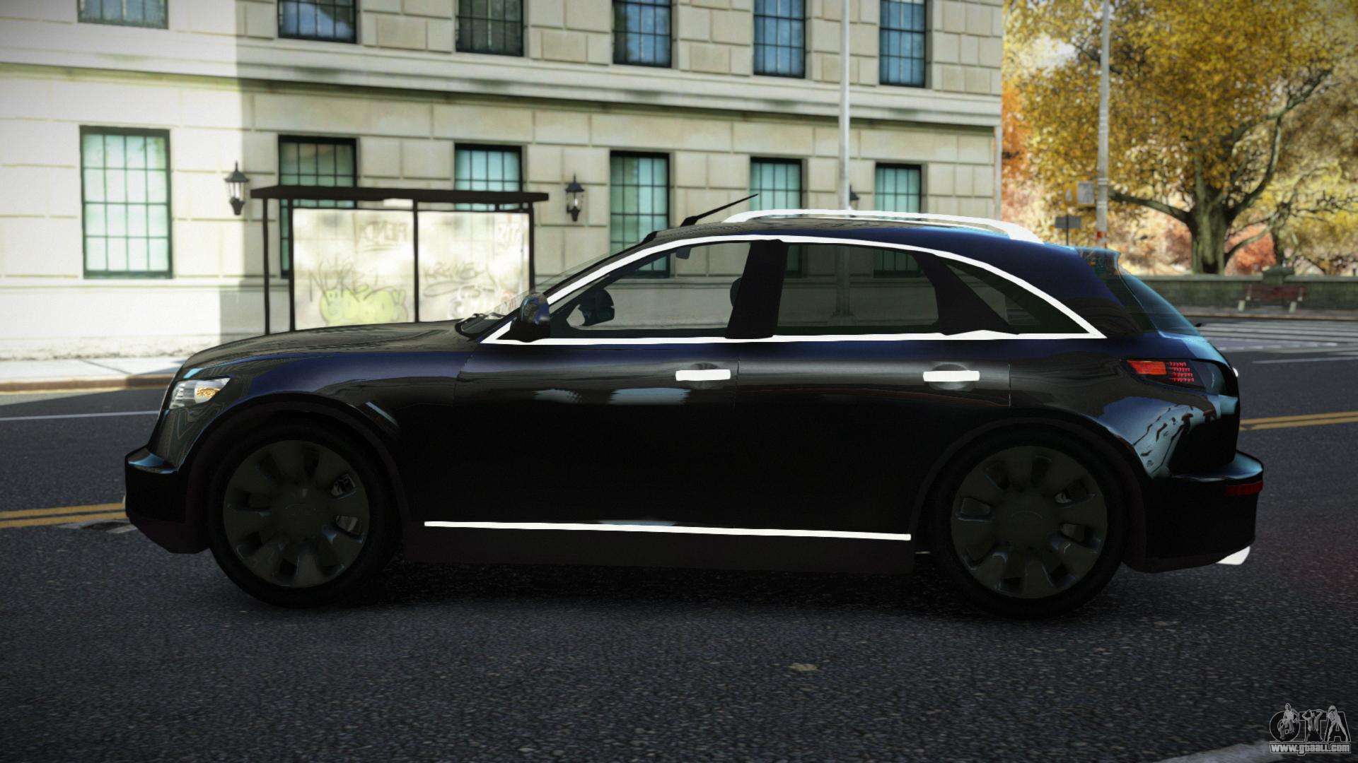 This is what you need! Follow the links below for a free download of the Infiniti FX45 Loxoz mod for GTA 4. The default setting is to replace Landstalker, or with the help of the same installer, you can replace it with any standard transport.