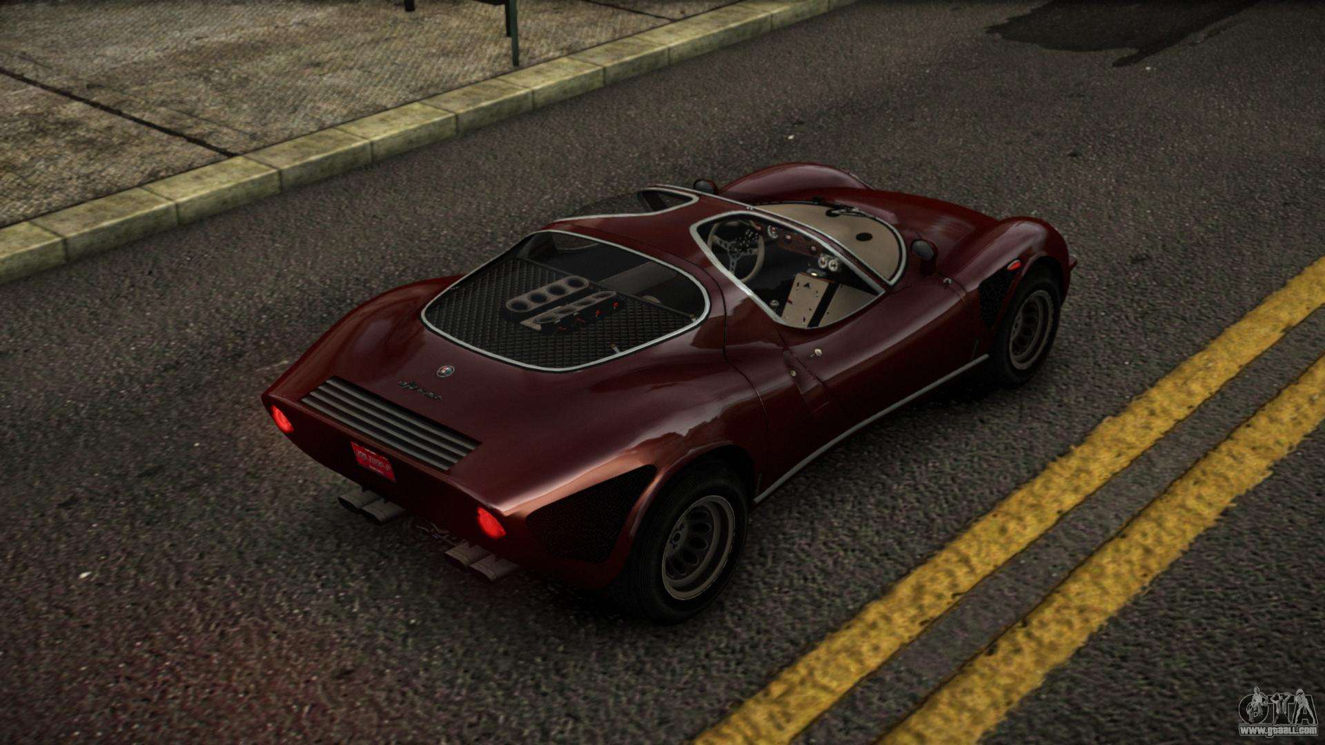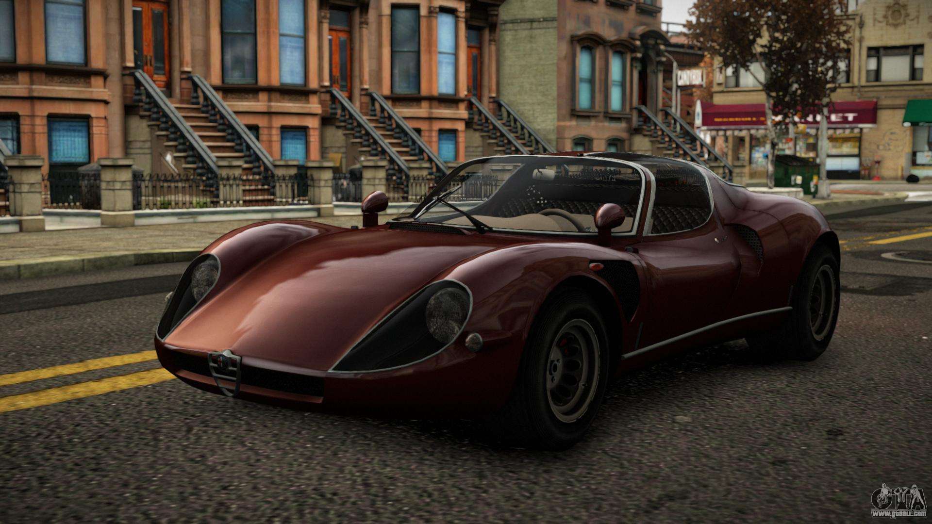 You can download the Alfa Romeo 33 Dive mod for GTA 4 at the links below. By default, the mod is installed in two clicks to replace Infernus. Thanks to our installer with automatic installation, you can replace any other standard vehicle in the game.