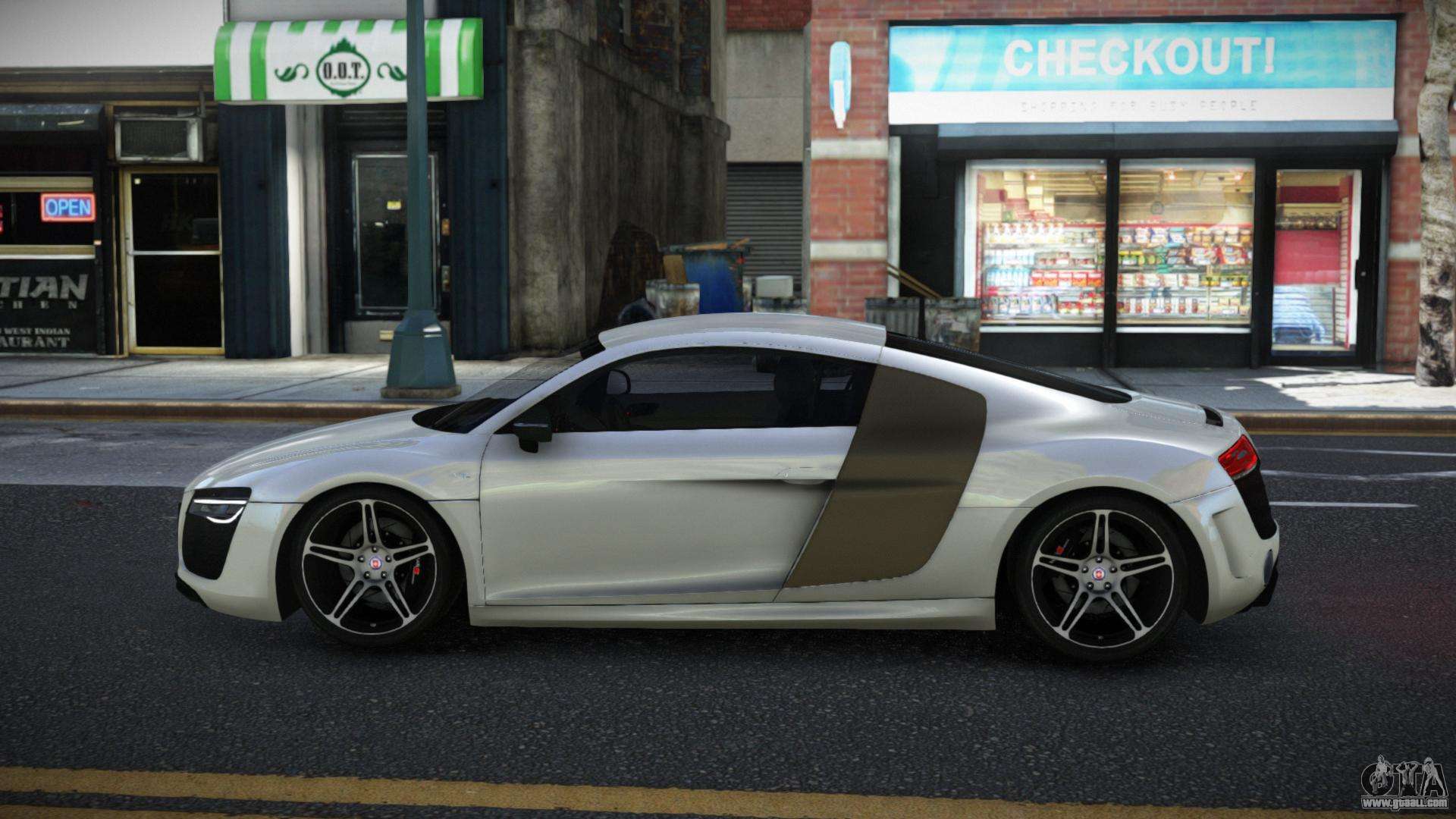 You can download the Audi R8 Lopko mod for GTA 4 from the links below. By default, the mod is installed in two clicks to replace the Banshee. Thanks to our installer with automatic installation, you can replace any other standard vehicle in the game.