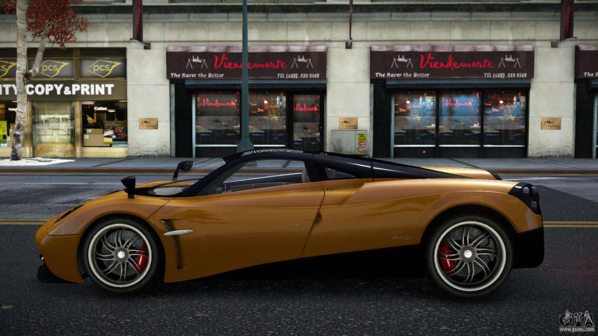 Using the links below you can download the Pagani Huayra Maqvom car mod for GTA 4 for free. By default, the mod automatically replaces the car with a Turismo. With the help of our installer, you can replace the car with another standard vehicle.