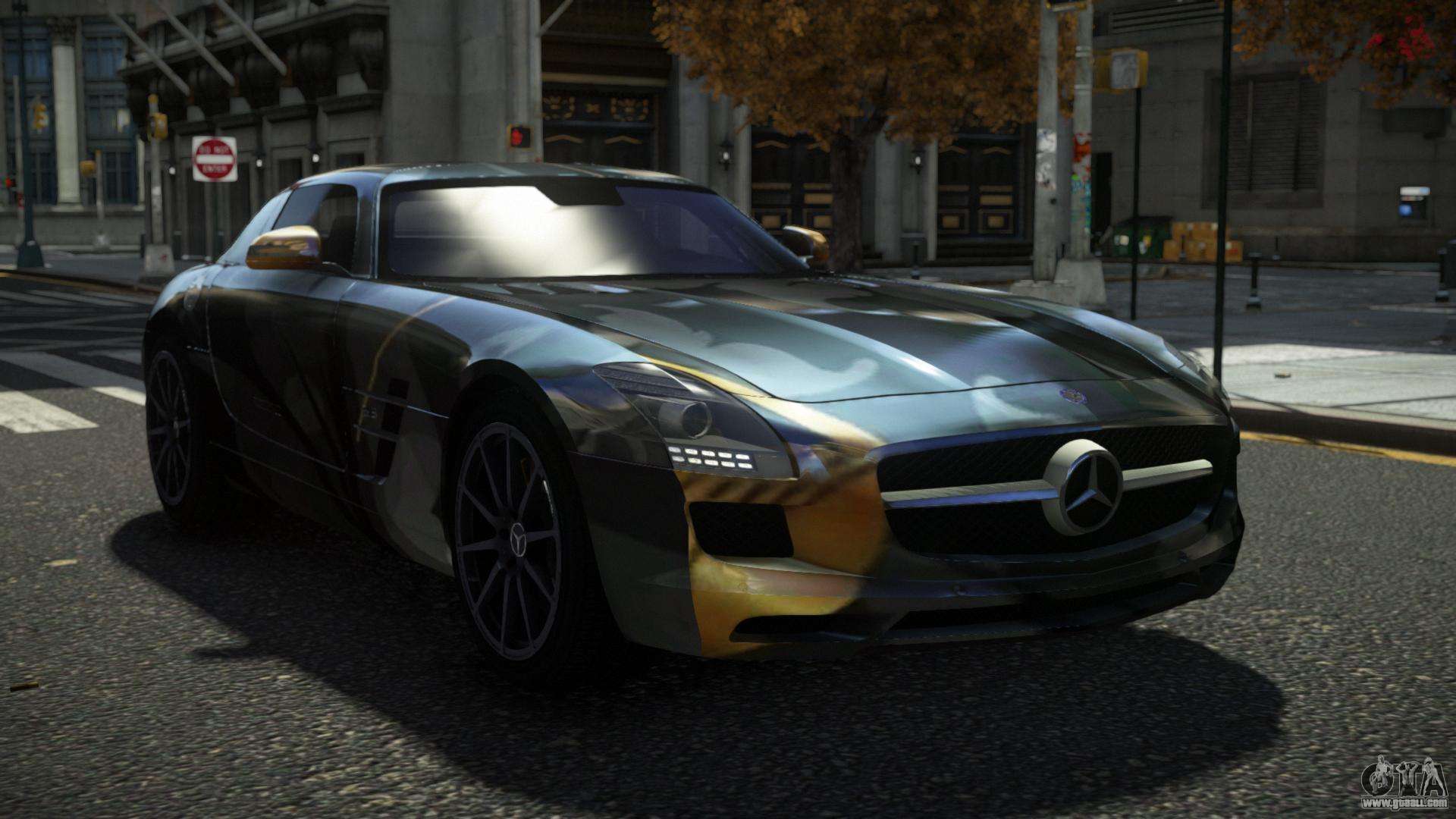 The Mercedes-Benz SLS Sater S1 mod for GTA 4 can be downloaded below at the links. The modification is automatically installed by default to replace the Feltzer, and with the help of our installer you can replace it with any standard game vehicle.