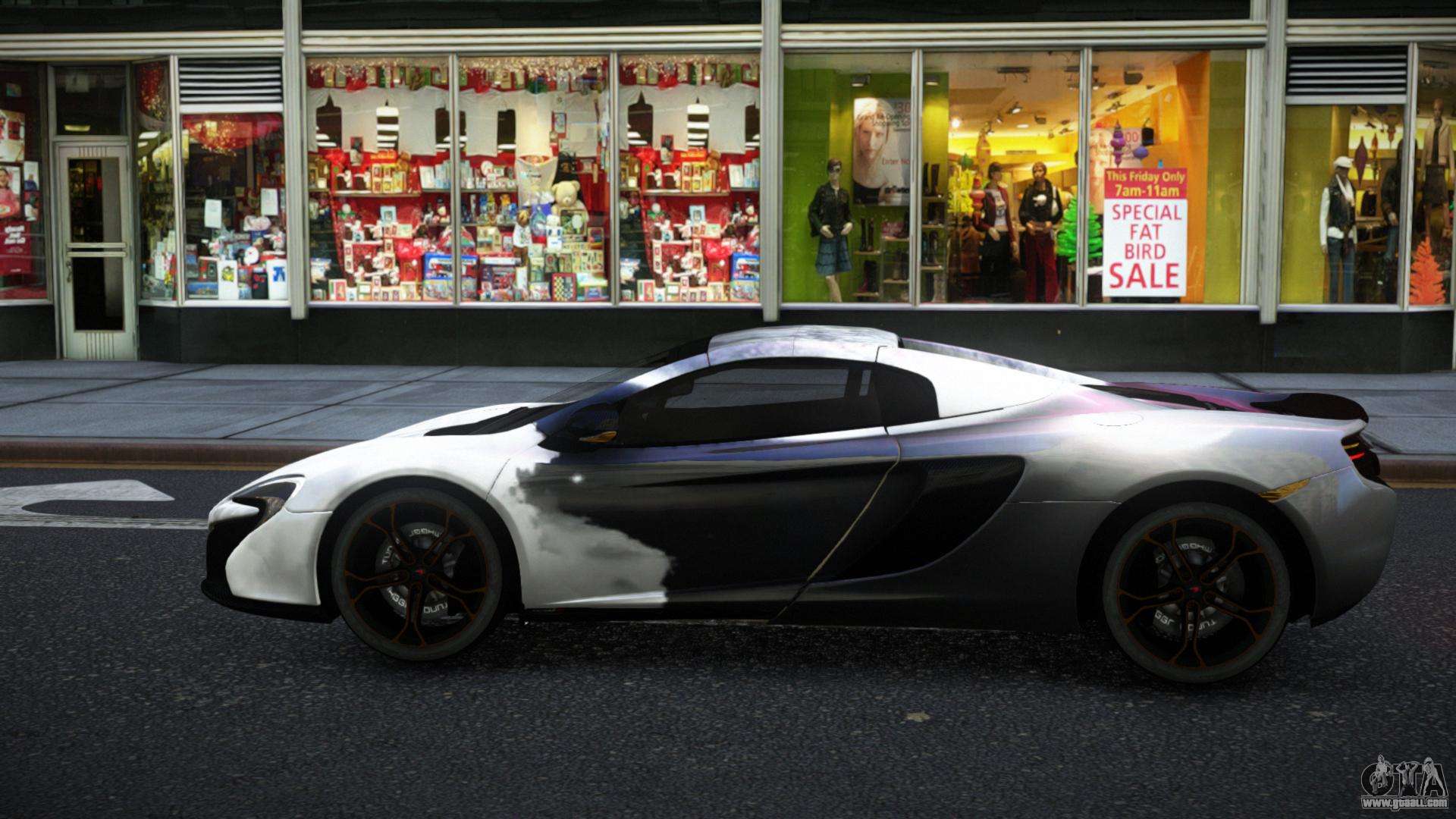 You can download the mod for McLaren 650S Anvax S5 for GTA 4 for free by clicking on the link below. Automatic installation, by default to replace the Banshee, or with the help of the installer you can choose any other standard car from the game.