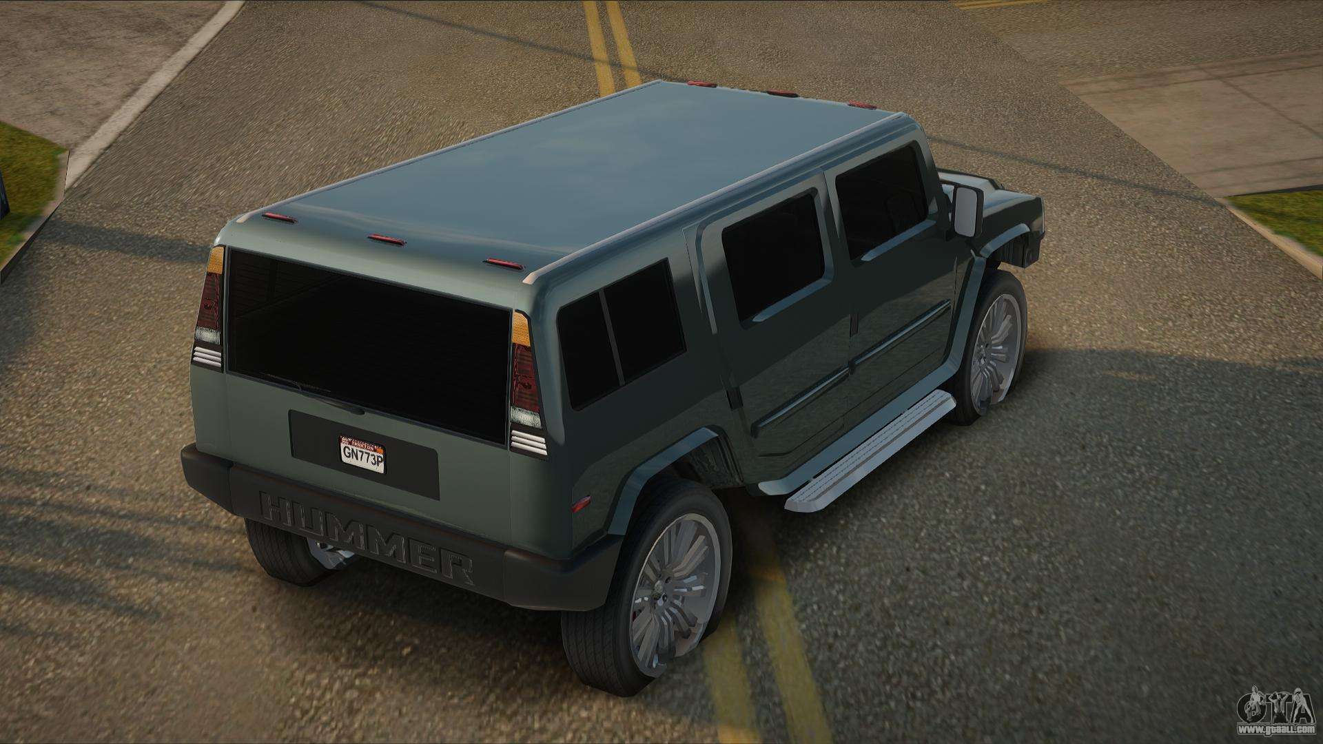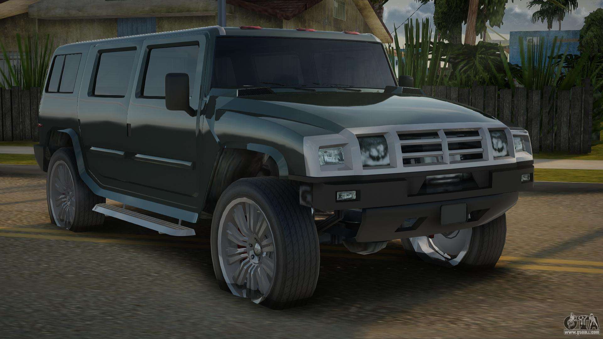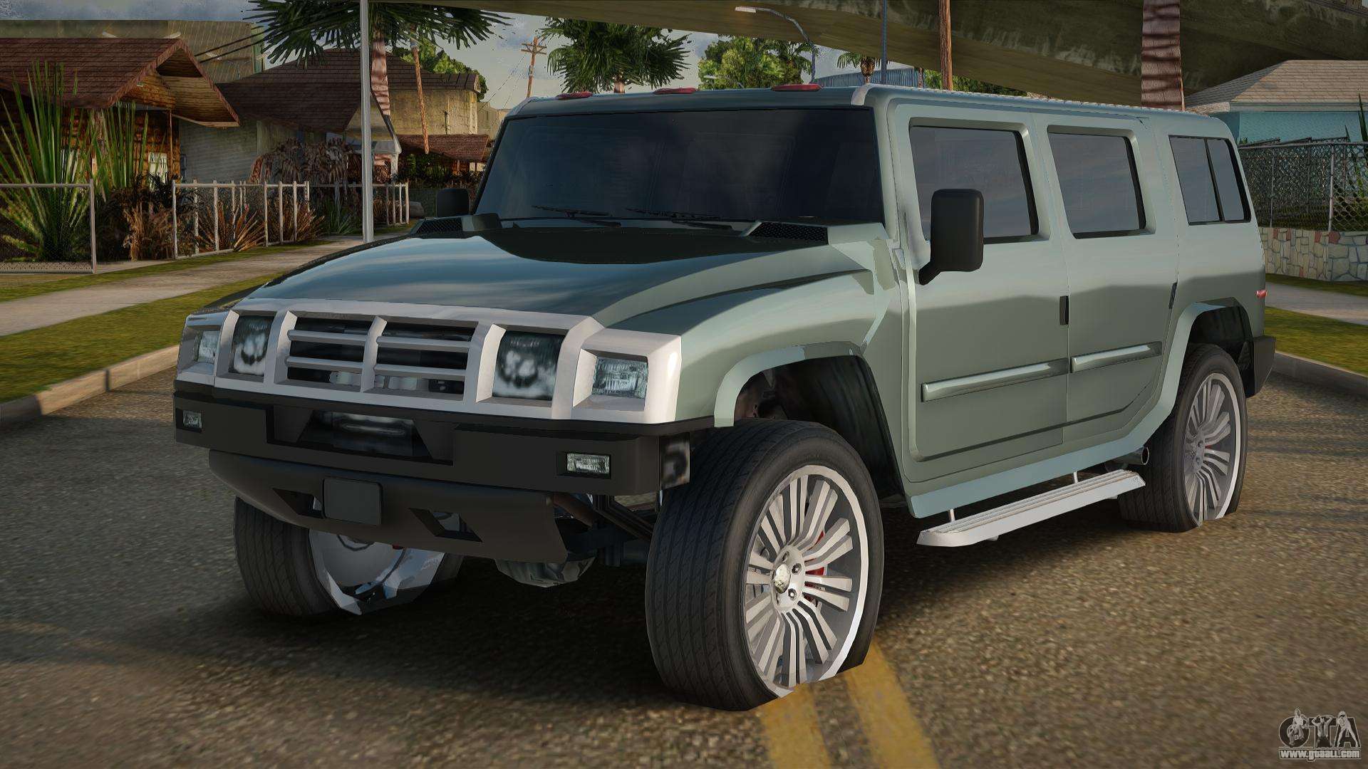Using the links below you can download the Hummer H2 12th car mod for GTA San Andreas for free. By default, the mod automatically replaces the car with a Patriot. With the help of our installer, you can replace the car with another standard vehicle.