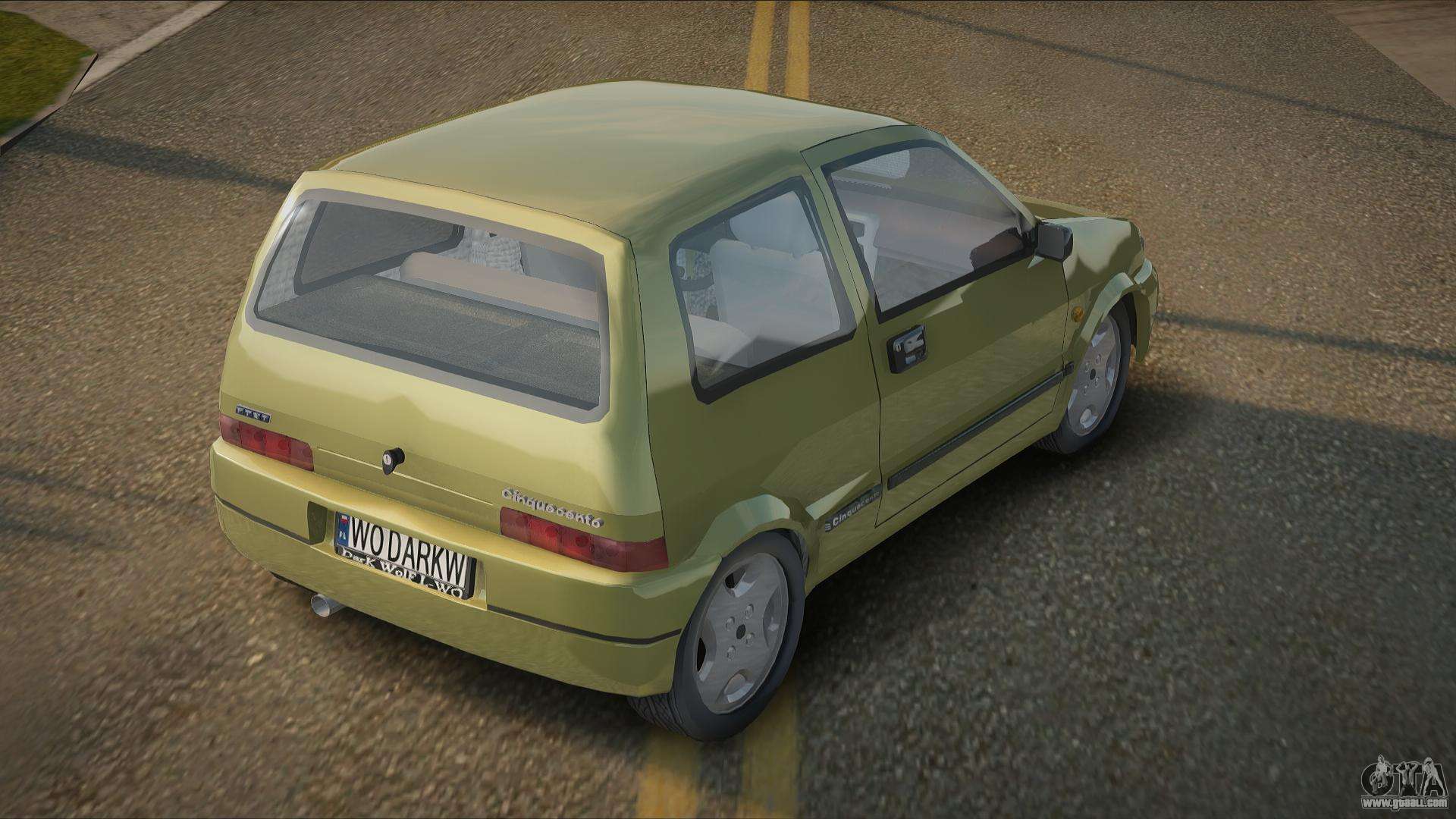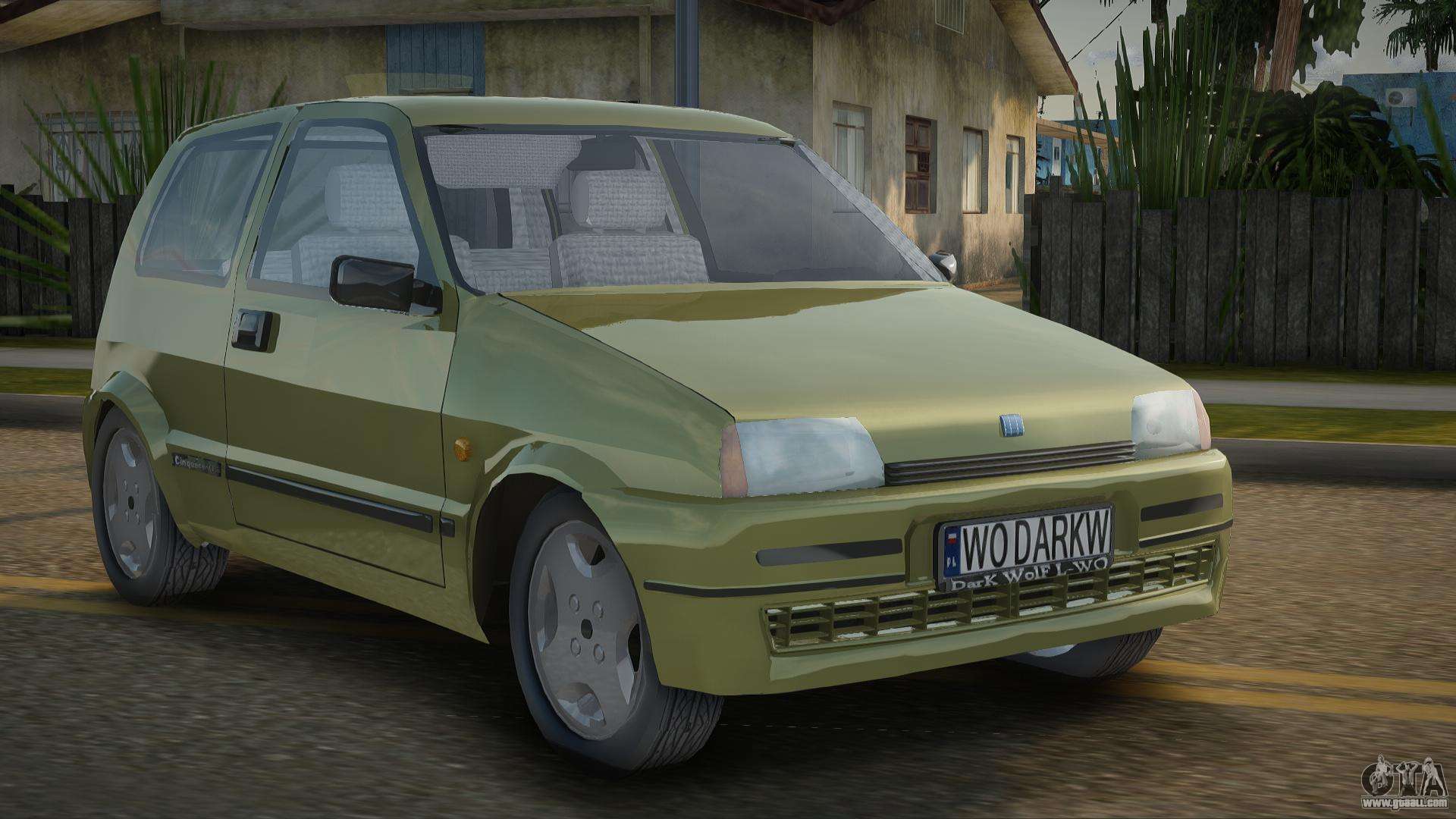 Using the links below you can download the Fiat Cinquecento V1.0 car mod for GTA San Andreas for free. By default, the mod automatically replaces the car with Manana. With the help of our installer, you can replace the car with another standard vehicle.