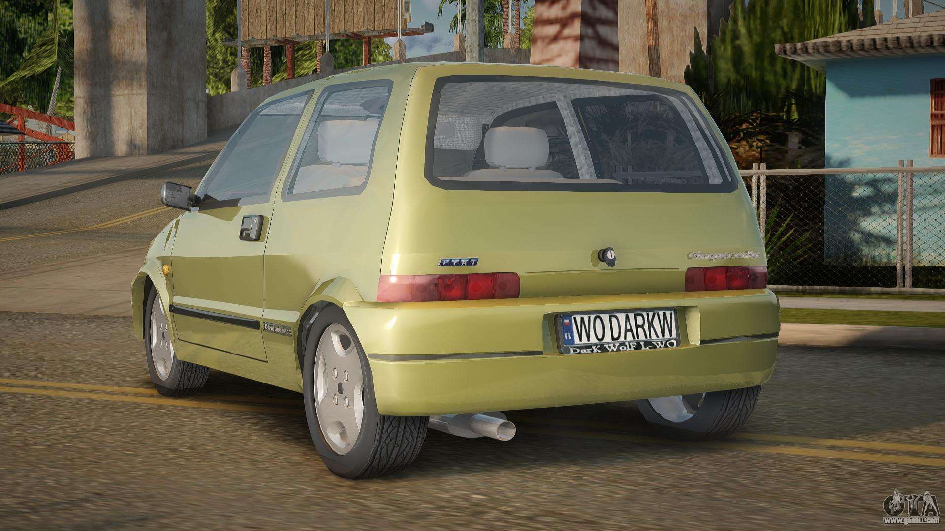 Good day, lovers of driving beautiful cars! Breathe new life into the traffic flow on the roads of San Andreas with the Fiat Cinquecento V1.0 car mod for GTA San Andreas. The high-quality work of the author will allow you to feel like driving an excellent car in a new way.