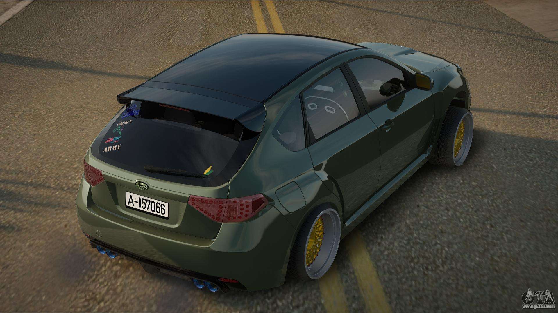 Using the links below you can download the mod for the car Subaru WRX STI Laferiah for GTA San Andreas for free. By default, the mod automatically replaces the car with the Bullet. With the help of our installer, you can replace the car with another standard vehicle.