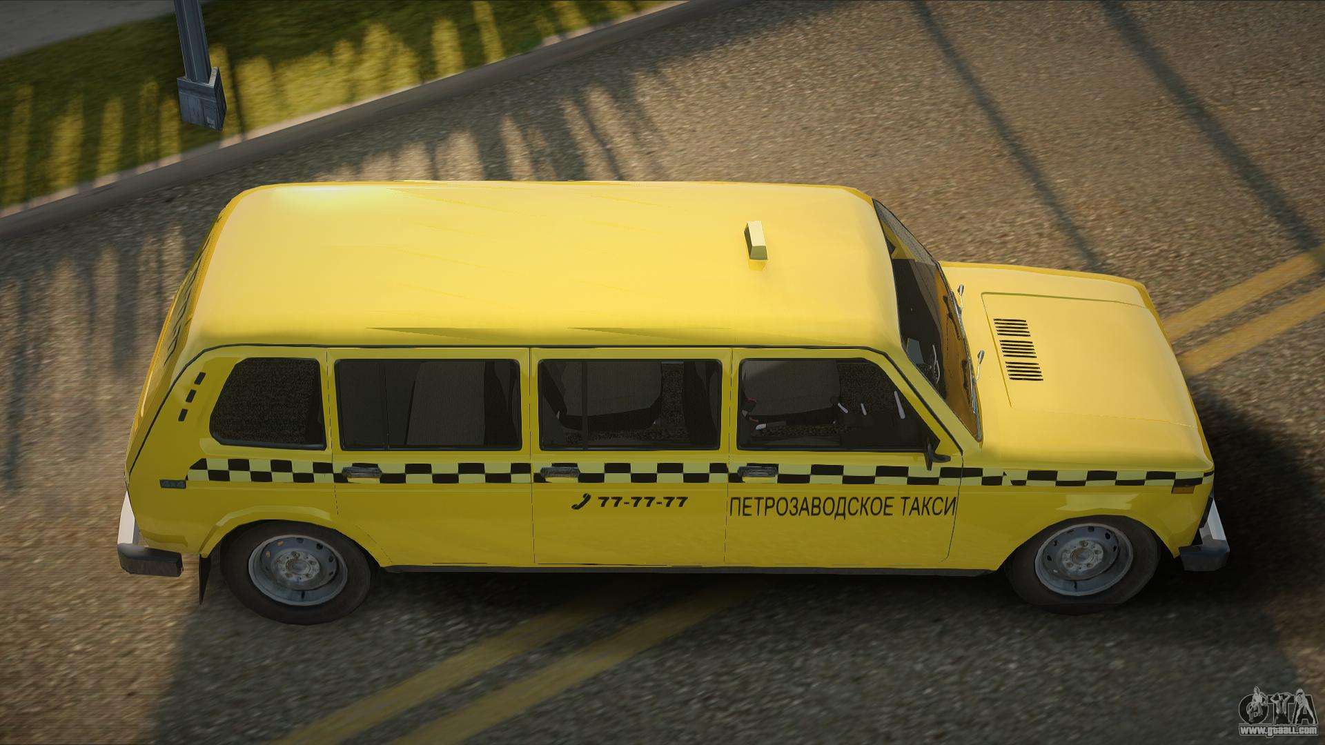 Using the links below you can download the mod for the car Lada 4x4 Karelian Taxi Limousine for GTA San Andreas for free. By default, the mod automatically replaces the car with Landstalker. With the help of our installer, you can replace the car with another standard vehicle.