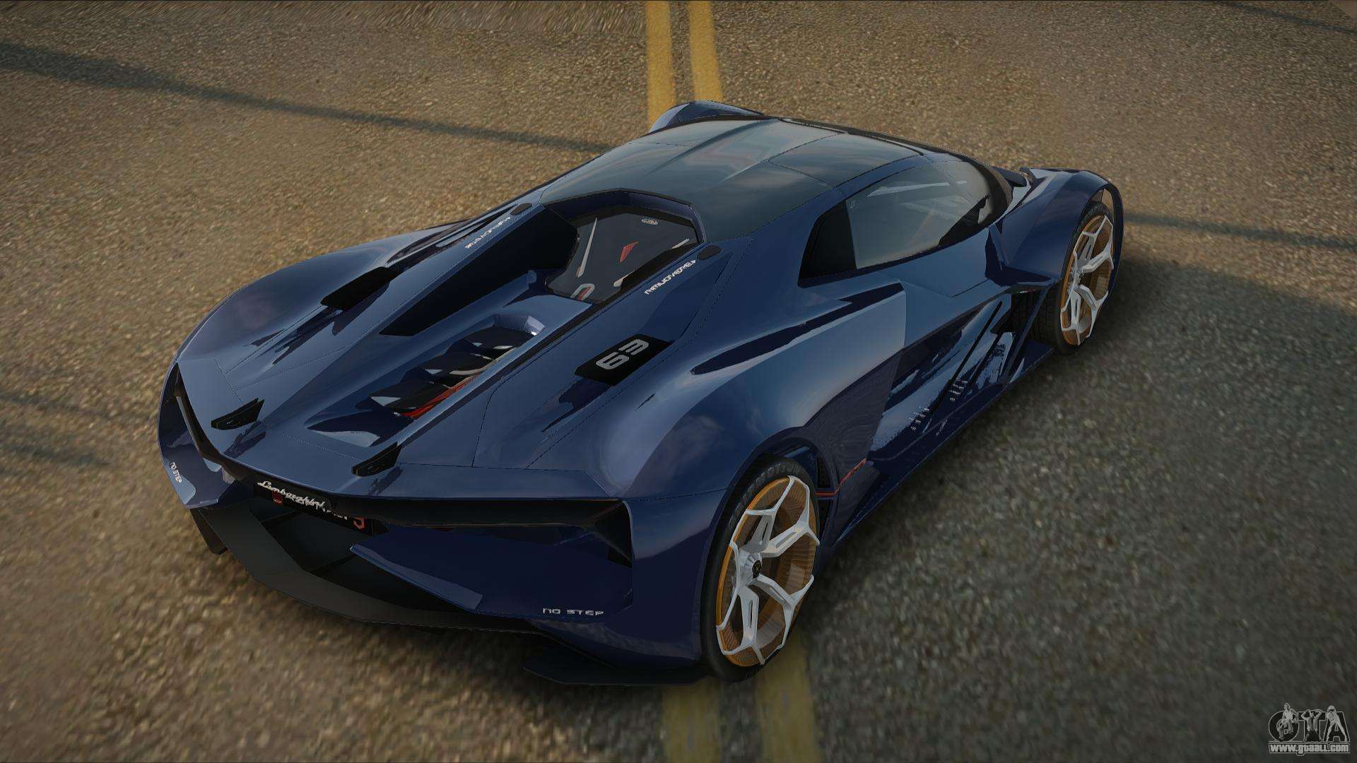 This is what you need! Follow the links below to download the Lamborghini Terzo Briles mod for GTA San Andreas for free. The default setting is to replace Savanna, or with the help of the same installer you can replace it with any standard transport.