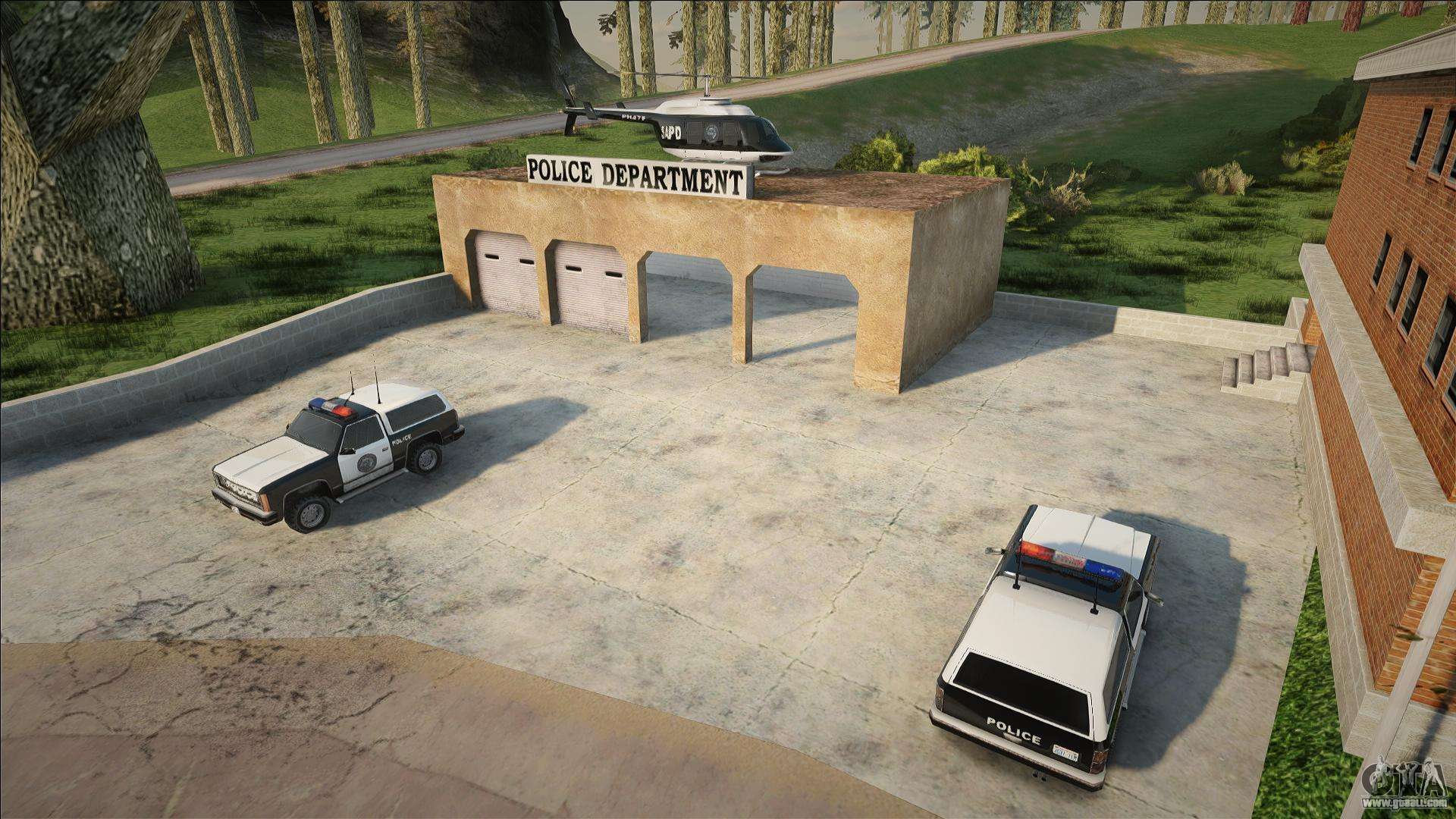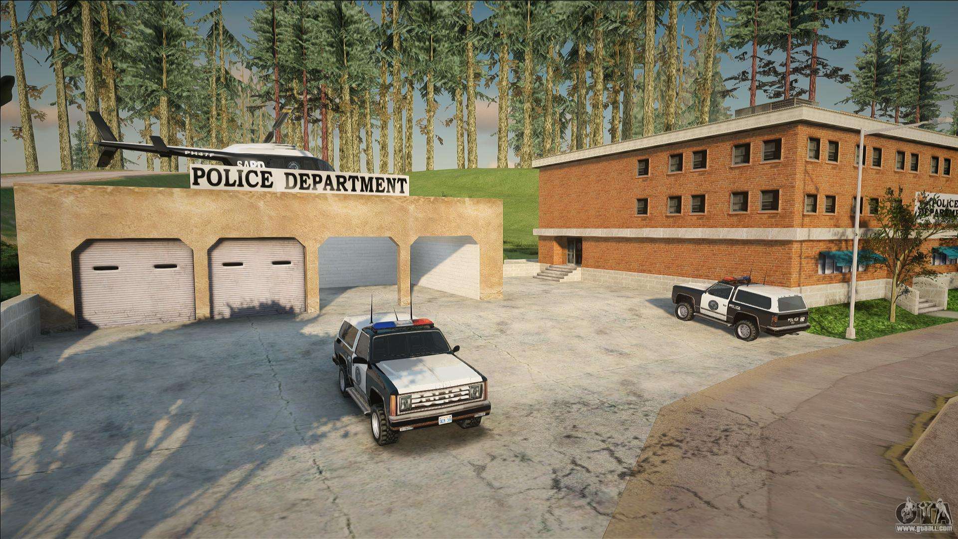 Excellent script - Service cars in the Dillimore section for GTA San Andreas. Police stations in rural areas were often left without proper attention and support. However, with the arrival of the new mayor, the situation changed: official cars began to arrive at the stations. The site in the village of Dillimore was no exception - service jeeps and even a helicopter for air support appeared here.